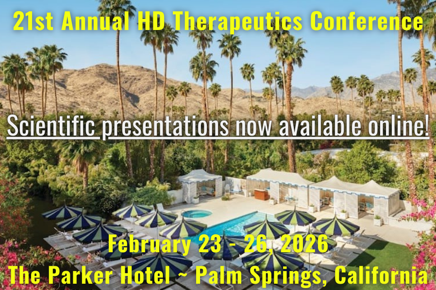 The Postcards are a series of short videos aimed at non-scientists that convey the major themes, scientific breakthroughs, and clinical trial updates from each year’s Huntington’s Disease Therapeutics Conference held (most usually) in Palm Springs, California. Beginning in 2006, this series of conferences is a unique forum where researchers from academia meet with pharmaceutical and biotechnology company colleagues to discuss their latest progress, share ideas, and spark new collaborations. If you would like to post this or any other of these Postcards on your website, please contact